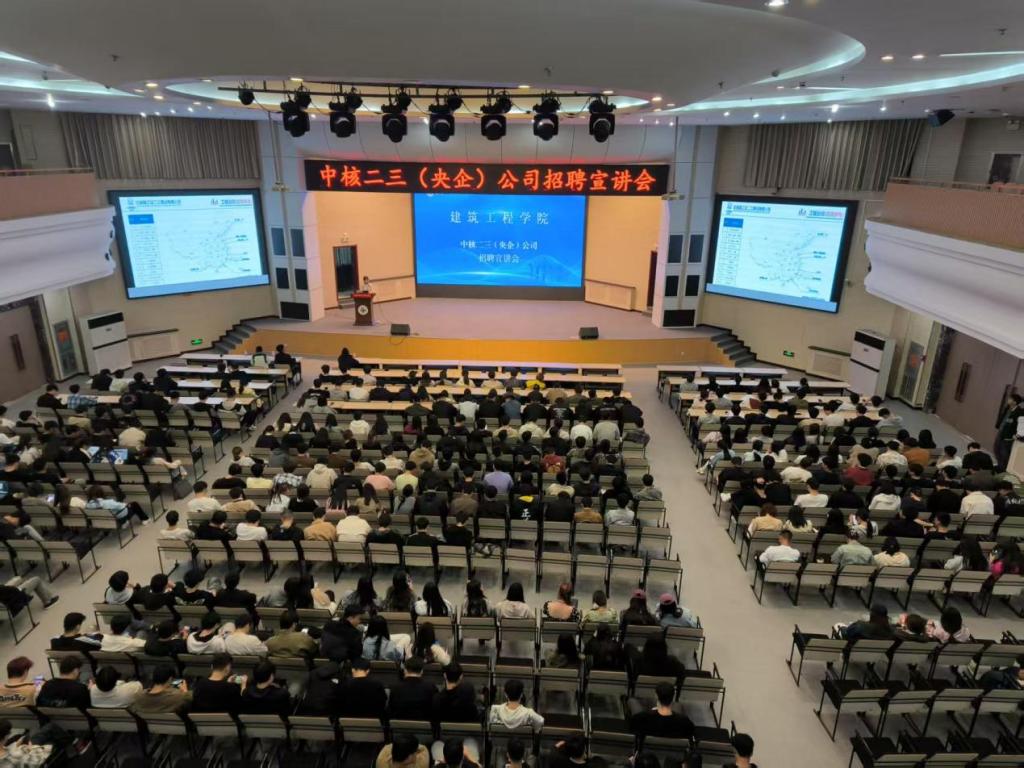 为深化校企合作,拓宽毕业生就业渠道,4月7日,澳门网投官方网站邀请中国核工业二三建设有限公司在天鹅湖校区学术报告厅举办招聘宣讲会。澳门网投官方网站教学科研工作负责人李佳出席,2023级全体学生参与。