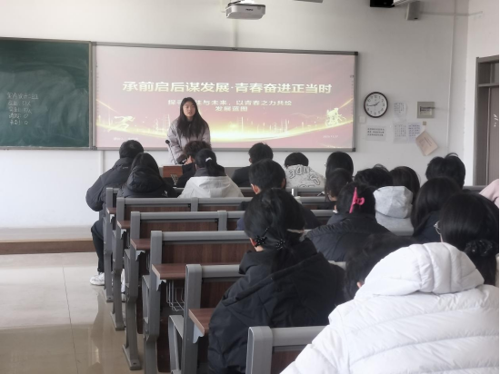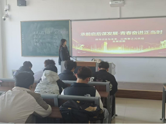 在共青团团歌声中各支部主题团日活动拉开帷幕。本次活动紧扣党的二十届四中全会核心要义,聚焦“十五五”规划战略部署与青年使命担当。各支部书记以《承前启后谋发展·青春奋进正当时》为题作专题讲座,从全会重大意义、“十四五”辉煌成就、“十五五”发展目标等维度,系统解读高质量发展、科技自立自强、新质生产力等关键部署,强调青年一代在基本实现社会主义现代化进程中的承前启后作用,鼓励同学们涵养实干精神,在专业领域深耕细作。