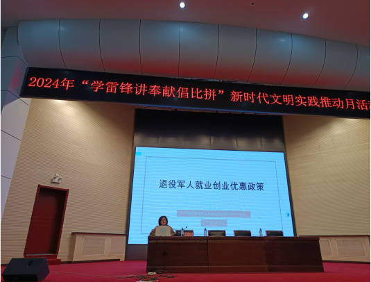 宋华分别从教育培训、促进就业、扶持创业、优待证的作用四大部分详细讲解退役军人就业创业优惠政策,详细分析了目前大学生就业所面临的严峻形势,鼓励同学们积极从学校应征入伍。