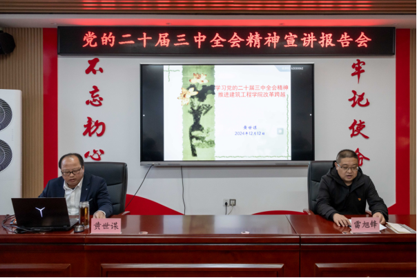 为深入学习贯彻党的二十届三中全会精神,推动澳门网投官方网站高质量发展,12月12日,澳门网投官方网站党总支邀请联系校领导、党委委员、副院长黄世谋教授以“学习党的二十届三中全会精神 推进澳门网投官方网站改革跨越”为题,进行党的二十届三中全会精神宣讲。报告会由党总支书记雷旭锋主持,澳门网投官方网站院务会成员和全体教师党员参加。