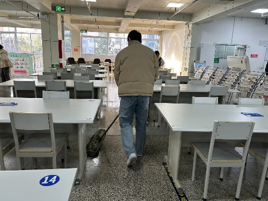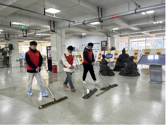 除了整理书籍,打扫图书馆卫生也是志愿者们的重要工作。志愿者们手持扫帚、拖把等清洁工具,俯身清扫地面的灰尘与纸屑,所到之处纤尘不染。他们还认真擦拭书架、书桌以及各类设施,不放过任何一个卫生死角,让图书馆的每一寸空间都焕发出洁净的光泽。志愿者徐嘉蔚说道:“看着图书馆在我们的努力下变得干净整洁,能为读者创造更好的阅读条件,所有的辛苦都值得了。