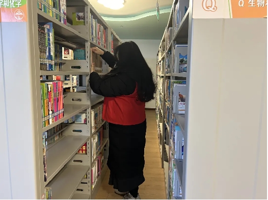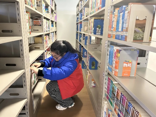 志愿者们在图书馆工作人员的悉心指导下,迅速熟悉了各项任务。他们忙碌的身影穿梭于书架之间,认真整理着各类书籍。有的志愿者专注于将归还的图书进行分类,确保每一本书都能准确地回到它所属的类目区域,方便读者查找;有的则仔细检查书架的排列顺序,将放错位置的书籍轻轻取出,重新安置在正确的架位上。