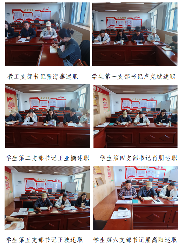 会议传达了学校党委关于基层党组织书记述职评议文件及要求。教工支部书记张海燕、学生第一支部书记卢克斌、学生第二支部书记王亚楠、学生第四支部书记肖朋学生第五支部书记王波、学生第六支部书记屈高阳,结合支部实际,从学习贯彻习近平新时代中国特色社会主义思想主线,抓党建第一责任人职责,全面落实基层党建工作重点任务,从严从实抓好党员队伍建设,整改清单落实情况等方面进行了述职汇报,全面总结一年来支部建设情况,认真分析了支部在党建工作中存在的问题,并提出下一步的工作思路和改进措施。