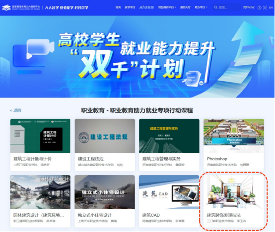 近日,教育部高校学生就业能力提升“双千”计划公布入选名单,我校6门优质课程成功入选国家智慧教育平台职业教育板块,其中澳门网投官方网站建筑室内设计专业李玉洁老师主持的《建筑装饰表现技法》课程凭借其鲜明的实践特色与产教融合优势脱颖而出,彰显了学院在建筑装饰领域人才培养的显著成效。