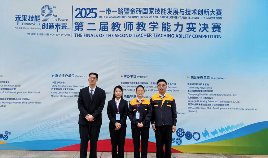 近日,2025年第二届“一带一路”暨金砖国家技能发展与技术创新大赛教师教学能力大赛决赛在珠海城市职业技术学院成功举办。由我校建筑学院王湘、贾赛、张程鑫、梁启扬四位教师组成的参赛团队,凭借出色的教学设计与现场表现,在竞争激烈的赛道6中脱颖而出,荣获三等奖。这一佳绩不仅展现了四位教师优秀的个人专业素养与教学能力,更彰显了我校建筑专业教师团队对接产业发展、深化教学改革的扎实功底与积极风貌。
