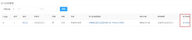 指导老师确认学生实习完成之后,系统自动形成实习总结。