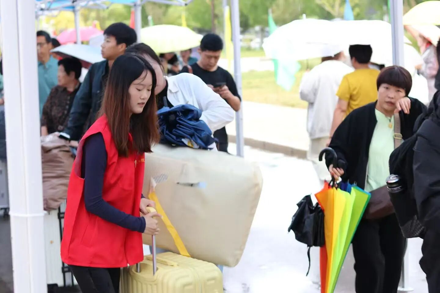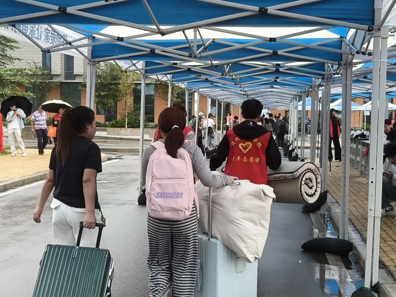 志愿者穿梭在校园的各个角落,他们用微笑传递温暖,用行动诠释奉献,他们对萌新们热情不减,道路指引、身份核验、扫码注册、提行李、拎包裹、他们用热情以“心”迎新。他们的付出如同繁星点点,照亮整个校园。