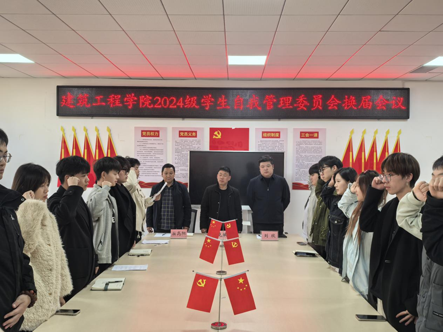 随后,全体新任自管会干部在与会师生的见证下庄严宣誓,铿锵有力的誓言表达了他们恪尽职守、服务同学、奉献学院的坚定决心。整齐划一的宣誓声将大会推向高潮,展现了新一届自管会干部昂扬向上的精神风貌。