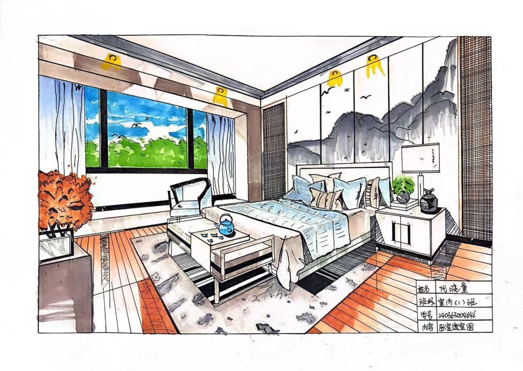 展览作品涵盖室内效果图手绘创作的多个维度,学生们运用马克笔、彩铅等专业工具,通过独特的艺术视角展现了空间透视、线条表现、色彩搭配等方面的专业素养。每件作品都体现了学生对空间美学的深刻理解与创新表达,展现了扎实的手绘功底和丰富的设计想象力。