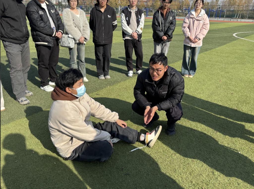 培训紧扣日常运动与生活中可能遇到的突发状况,内容详实,重点突出。姬良恩首先讲解了运动性低血糖的识别、预防与处置,提醒同学们在体育锻炼前后注意能量补充,避免空腹剧烈运动,并教会大家识别头晕、心慌、出冷汗等早期信号,以及如何通过补充糖分进行快速应对。