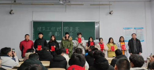 会上,王春梅老师首先对此次竞赛成绩进行总结发言,指出识图竞赛不仅是对自身专业知识的检测,更可为今后专业学习奠定基础;并宣读获奖名单,由席仁义院长、王超伟老师共同为获奖学生进行颁奖。