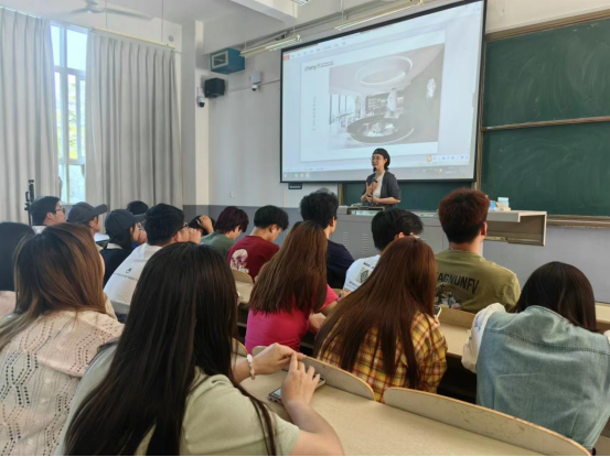 公司创始人兼软装设计总监沈笑婕凭借丰富的行业经验和同学们分享了公司文化、创意案例、空间塑造、软装搭配和家具订购等方面的工作知识。公司创始人兼设计总监陈程意以丰富的参赛经验向同学们解读了何为设计,并为在场的学生进行了行业发展的深度解读与职业生涯规划指导。