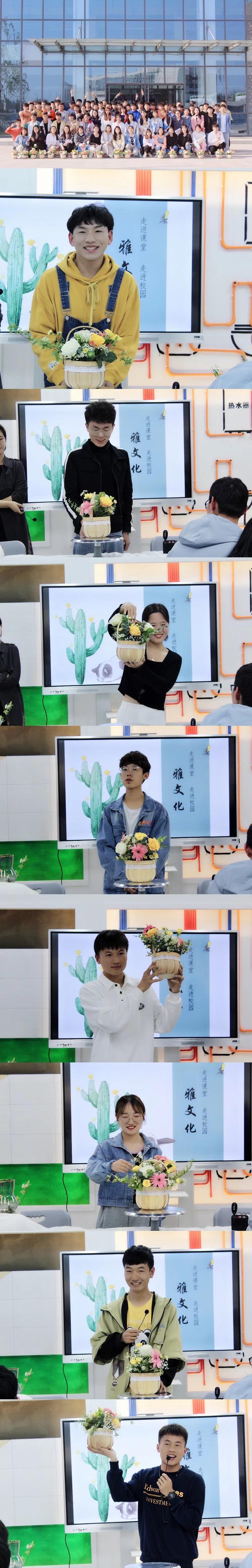 为提高学生自身艺术鉴赏和审美能力,丰富技艺,培养花艺作品实际设计创作动手能力,使学生具备对插花艺术品的鉴赏与应用能力。增强学生艺术修养,培养学生开拓创新和团队协作能力,促进学生综合素质的提高。2021年4月22号,建筑装饰工程专业打破传统授课方式。以“花型制作”为主线边做边学,理论指导实践,实践验证理论,开展软装课程特色教学活动。活动内容围绕“雅文化走进课堂-花艺设计”主题进行,掌握插花艺术的花材选择、处理及固定等基本技法。把大家领进艺术创作的大门。