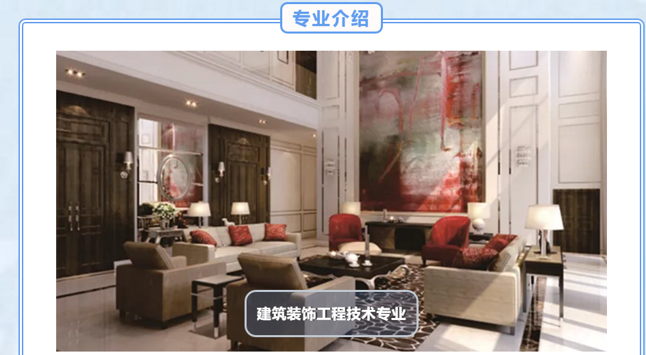 建筑装饰工程技术是一门以实用技术为主导的学科。它依据建筑学原理,对建筑的内、外环境展开设计;借助现代工程技术实施施工、管理与检测工作,同时对工程造价进行有效控制。该专业是教育部第三批“现代学徒制” 试点专业。