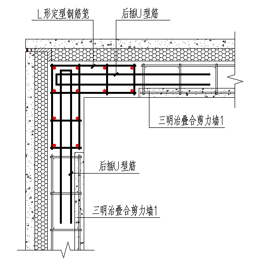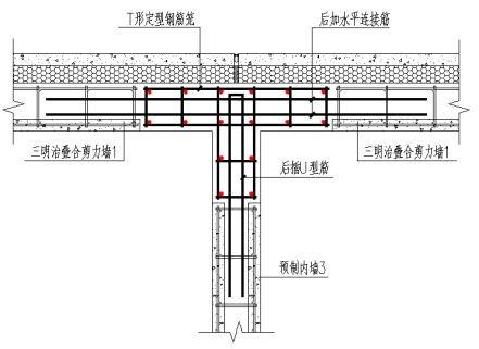 图5 叠合柱构件4. 典型连接节点。叠合剪力墙边缘构件范围内均采用成型钢筋骨架,辅助定型模板,减少现场钢筋、模板工作量及人工用量。剪力墙竖向连接采用钢筋搭接方式,质量可靠易检。