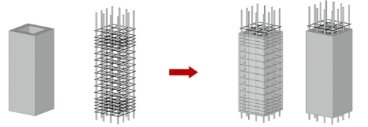 混凝土壳体 + 成型钢筋骨架 = 叠合柱构件