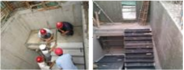 楼梯为施工过程中的主要垂直通道,在连接固定完成后必须在表面铺设模 板进行成品保护。