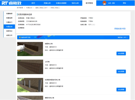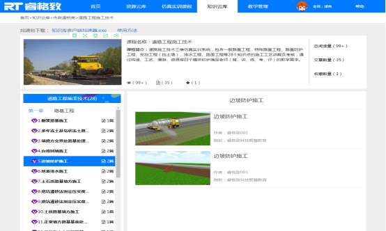 道路施工技术虚拟仿真课程包含路基工程、路面工程、附属工程的实训内容,真实体验施工工艺全过程,实训流程环环相扣,实训过程由浅入深,实现真实施工现场不具备和难以完成的教学功能。