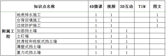 (1)了解道路附属结构、支护结构、防排水等施工的资源配置;