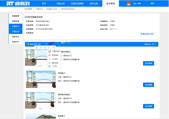 资源库内的图文、视频、试题、模型、TIM模型、BIM模型可生成二维码和资源链接,老师将生成的资源链接插入到教材中形成生动的教学资源,学生通过手机QQ、微信等扫描二维码便可进行手机查看教师分享的模型。