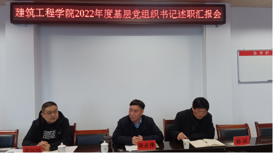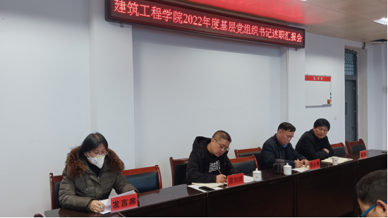 雷旭锋书记传达了学校党委关于基层党组织书记述职评议文件及要求。教工支部书记张海燕、学生第一支部书记卢克斌、学生第二支部书记肖朋、学生第三支部书记王波、学生第四支部书记王东东、学生第五支部书记张超丽,结合支部实际,从学习贯彻习近平新时代中国特色社会主义思想和党的二十大精神情况、履行抓党建第一责任人职责情况、推进基层党组织建设情况、发挥基层党组织战斗堡垒和党员先锋模范作用、完成重大任务情况、落实党风廉政建设和意识形态工作责任制情况等方面进行了述职汇报,全面总结一年来支部建设情况,认真分析了支部在党建工作中存在的问题,并提出下一步的工作思路和改进措施。